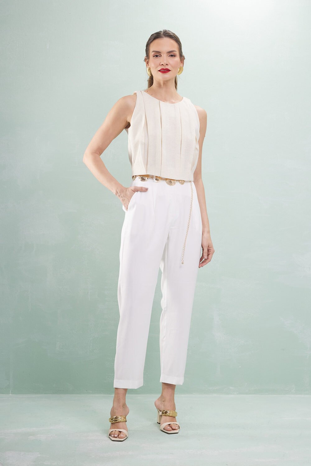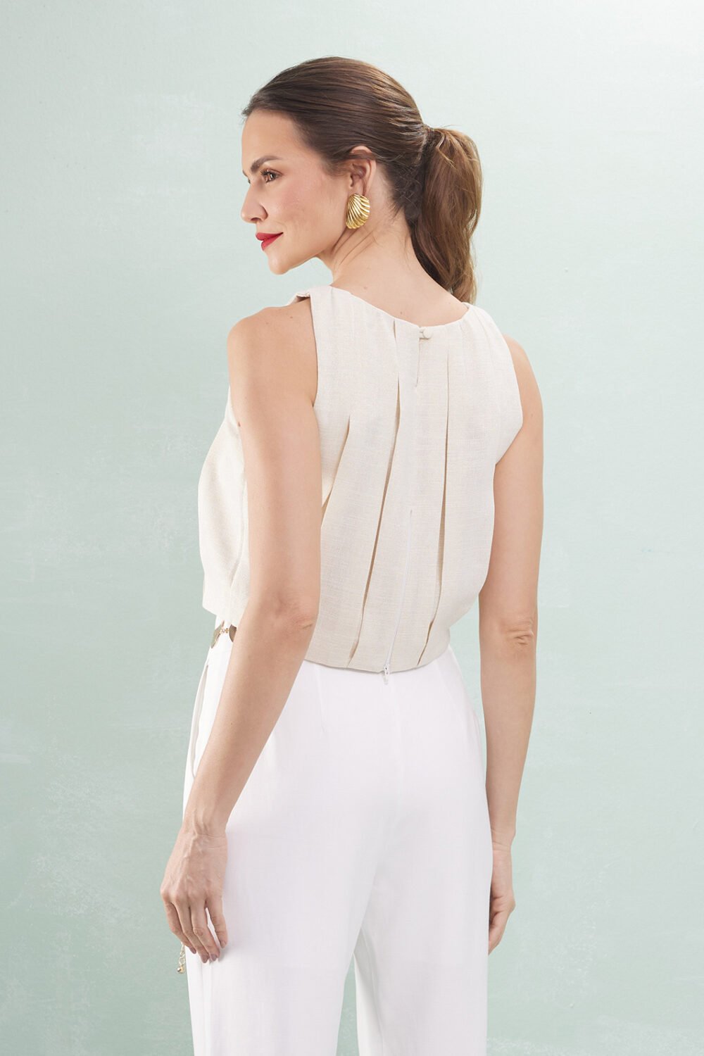 Blusa Alça Com Pregas Linho Com Lurex