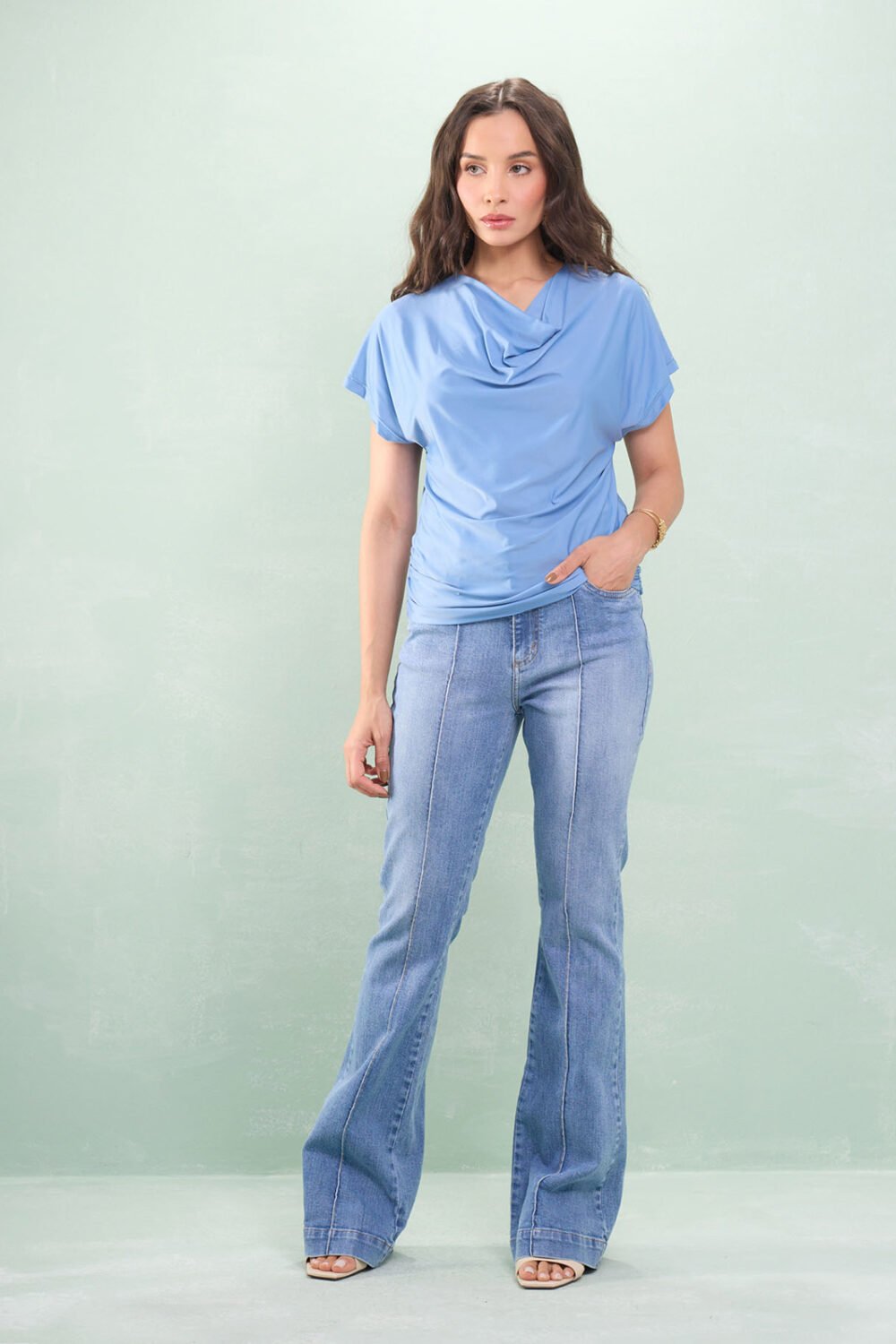 Blusa Manga Curta Decote Degagê Jersey