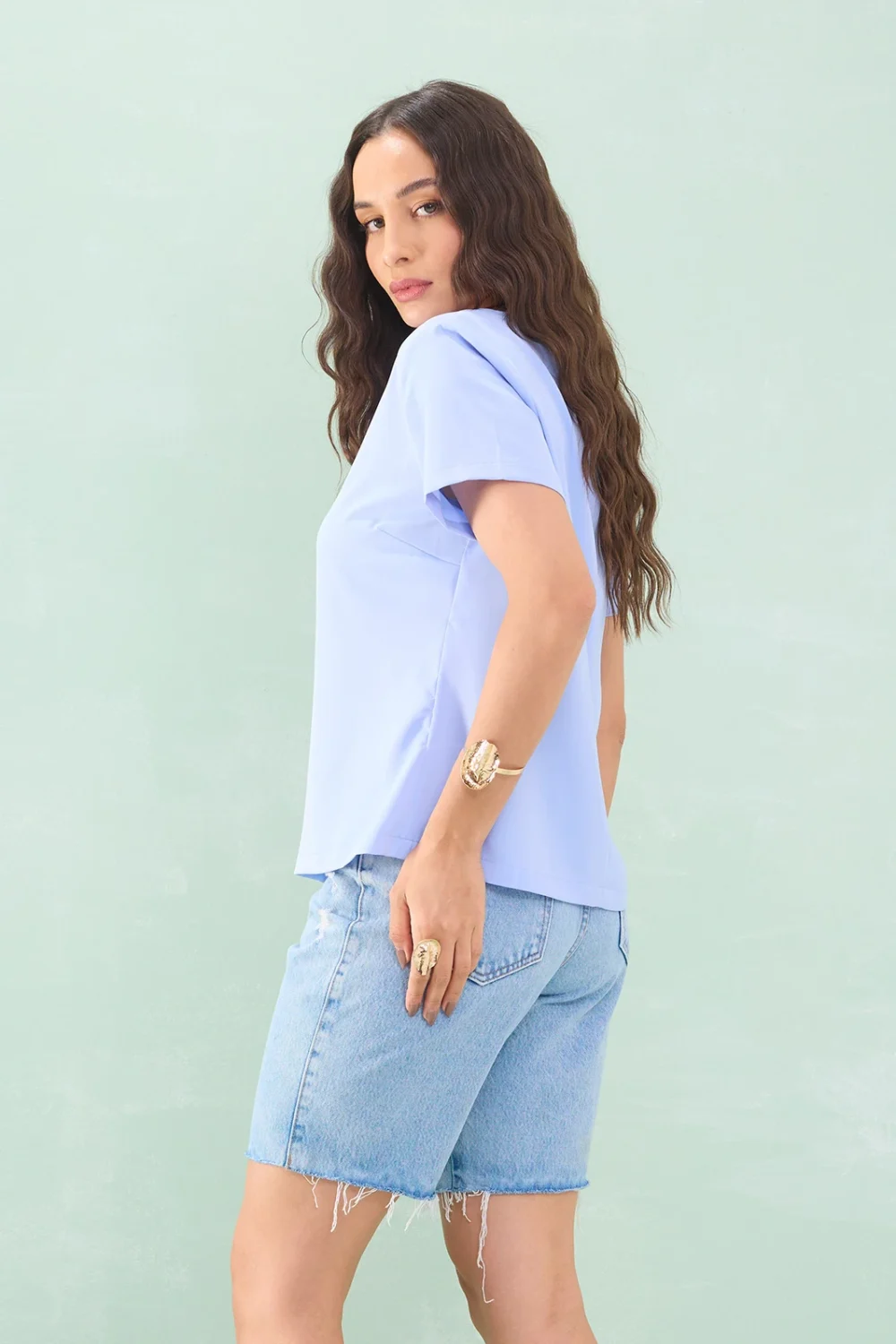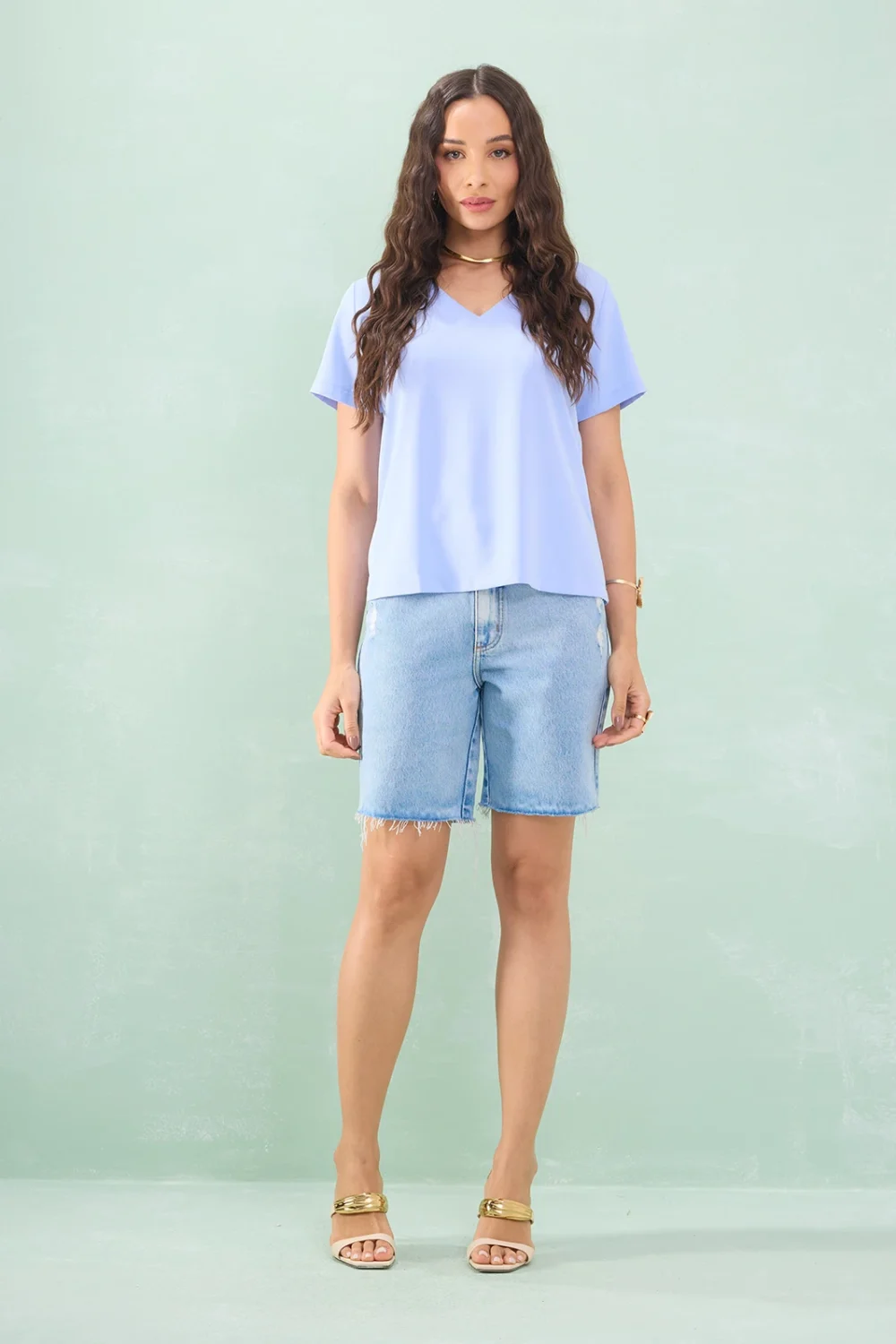Blusa Manga Curta Decote V Crepe