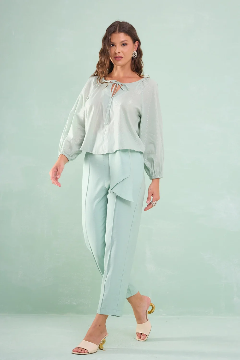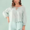 Blusa Manga Longa Com Amarração Algodão Com Lurex