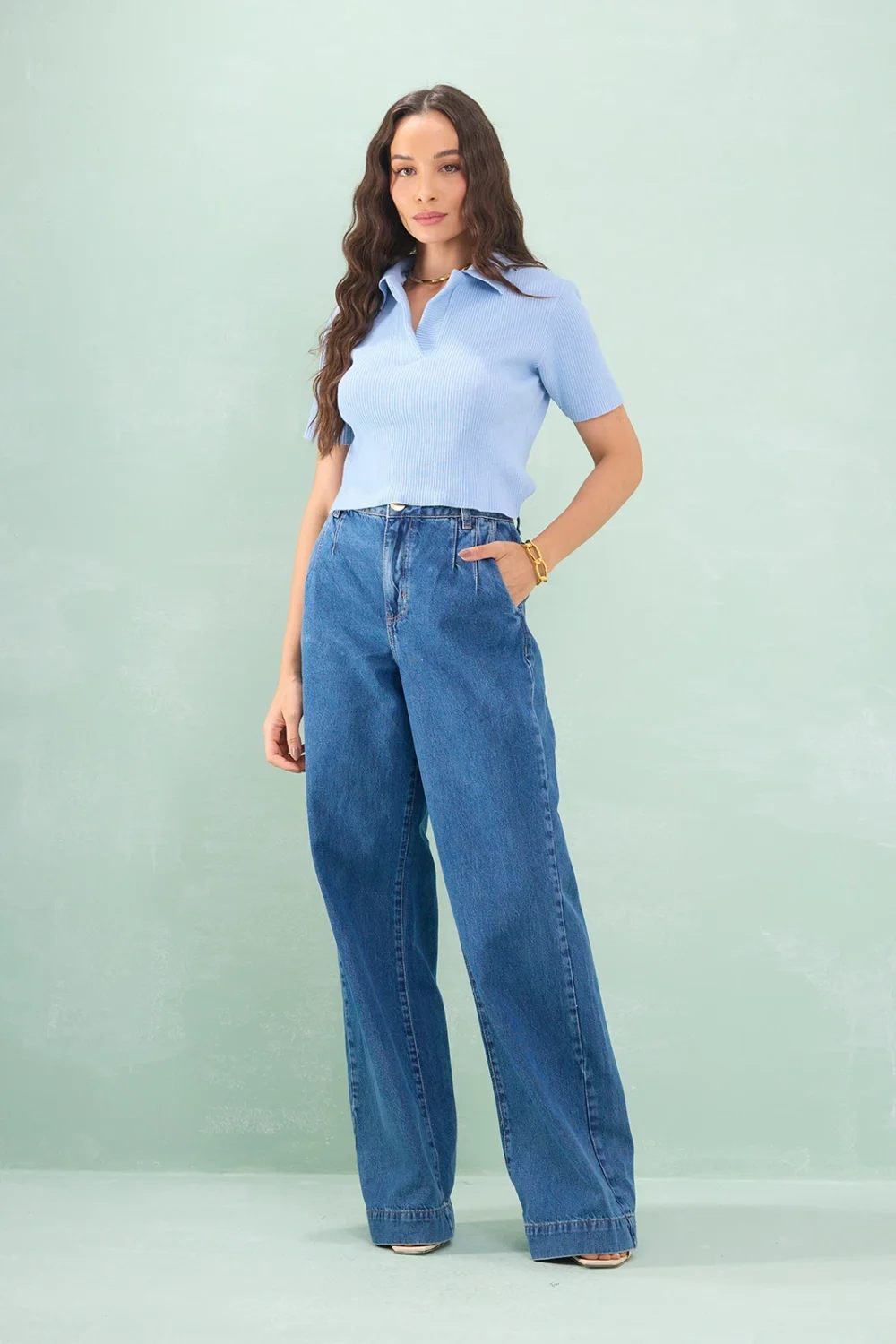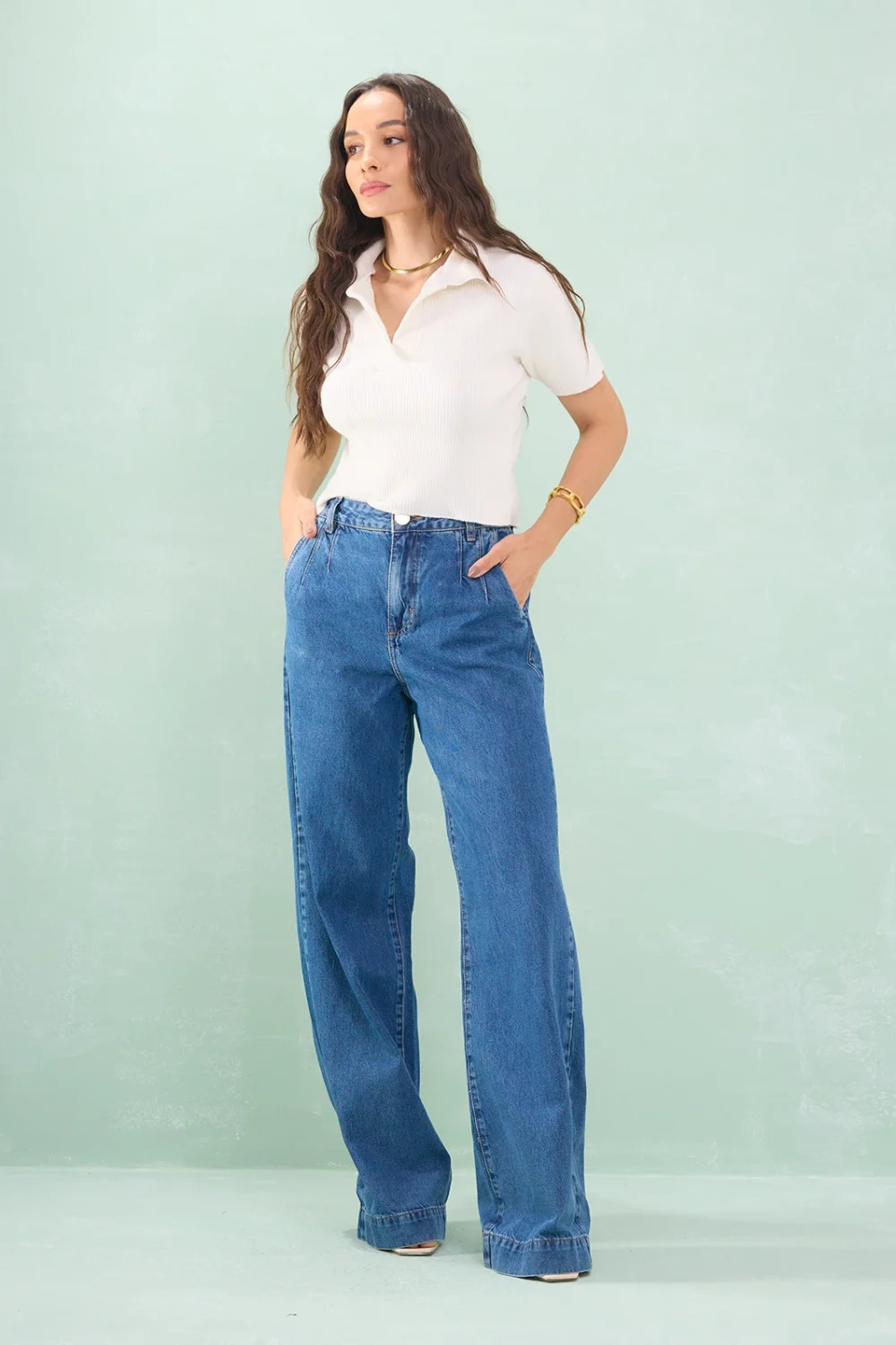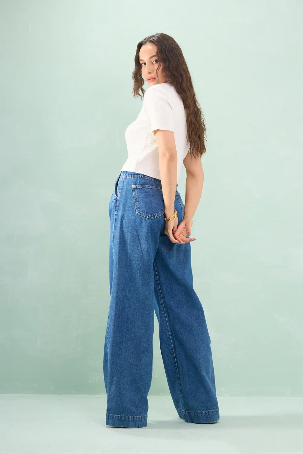 Calça Jeans Wide Leg Barra Larga