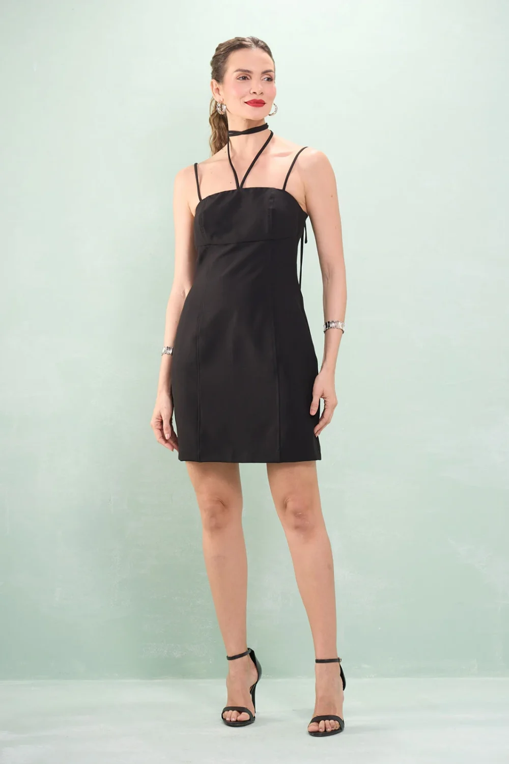 Vestido Corset Alça Fina Com Amarração Alfaiataria
